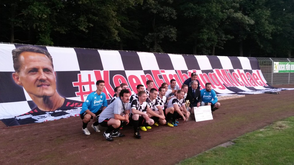 Ancora con le fresche immagini del trionfo della nazionale tedesca ai mondiali di calcio in Brasile, i tifosi sono accorsi numerosi allo stadio Herbert-Dröse-Stadion nella splendida città di Hanau, per sostenere il beniamino di casa, il quattro volte campione del mondo di Formula Uno Sebastian Vettel applaudito ad ogni suo passaggio e per far sentire la propria vicinanza, il proprio calore e il proprio supporto a Michael Schumacher, sempre e comunque presente non solo nei pensieri di tutta la squadra ma anche nelle iniziative come il gigantesco banner esposto con l’incitamento “Keep Fighting Michael”.